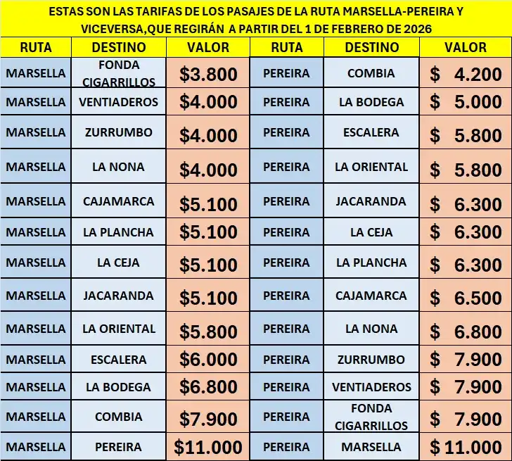 Estas son las tarifas de los pasajes de la ruta Marsella – Pereira y viceversa que regirán a partir del 1 de febrero de 2026